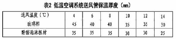 3.1.4低溫空調(diào)系統(tǒng)運(yùn)風(fēng)管保溫厚度見(jiàn)表2。