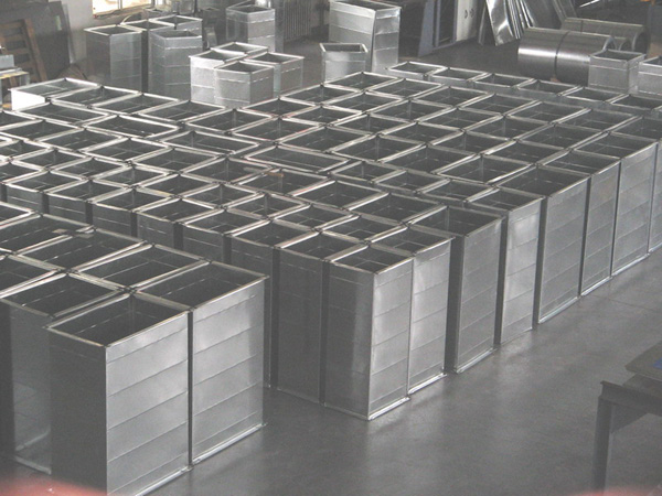 “共板法蘭”風(fēng)管為我公司今年引進(jìn)國際最新設(shè)備開發(fā),以鍍鋅鋼板為管體的“共板法蘭”和“插接式法蘭”式新型通風(fēng)管道。該通風(fēng)管道90%的工作量為全自動(dòng)機(jī)械化流水作業(yè),風(fēng)管的法蘭與管體是同一整體的鍍鋅板機(jī)械壓制而成,加工速度快,施工周期短。它不需要象制作無機(jī)不燃玻璃鋼風(fēng)管那樣,由風(fēng)管生產(chǎn)廠家派很多的工人到用戶廠內(nèi)現(xiàn)場生產(chǎn),而是在公司內(nèi)制成半成品(只剩下最后一道咬合工序)運(yùn)到用戶現(xiàn)場組裝,所派到用戶現(xiàn)場只是風(fēng)管安裝人員。該風(fēng)管的總體安裝重量比無機(jī)不燃玻璃鋼通風(fēng)管道要輕得多,風(fēng)管密封性能好。該產(chǎn)品特別適用于現(xiàn)在新建的鋼結(jié)構(gòu)廠房----重量輕、施工周期短、對鋼結(jié)構(gòu)廠房的承重負(fù)荷要求較無機(jī)不燃玻璃鋼風(fēng)管低。