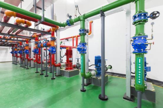 消防泵房設備布局美觀,閥門高度一致,油漆涂刷均勻,管道成排成線,標識清晰。