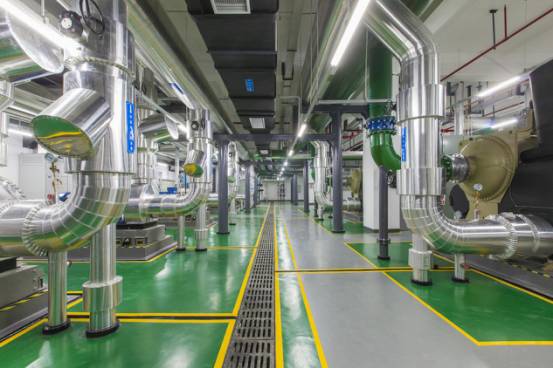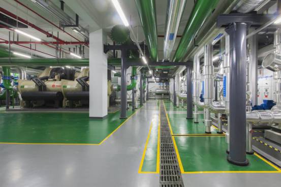 空調換熱機房布局合理,設備運行可靠,支架安全、可靠、大氣,標識清晰。
