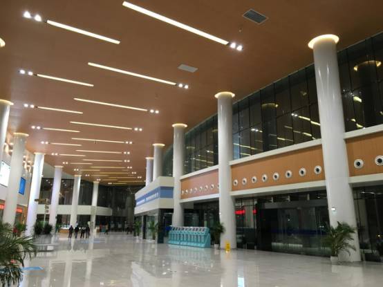 診室候診區(qū)燈具、噴頭、風口、煙感排布精細美觀,橫成排、豎成行、斜成線,錯落有致。
