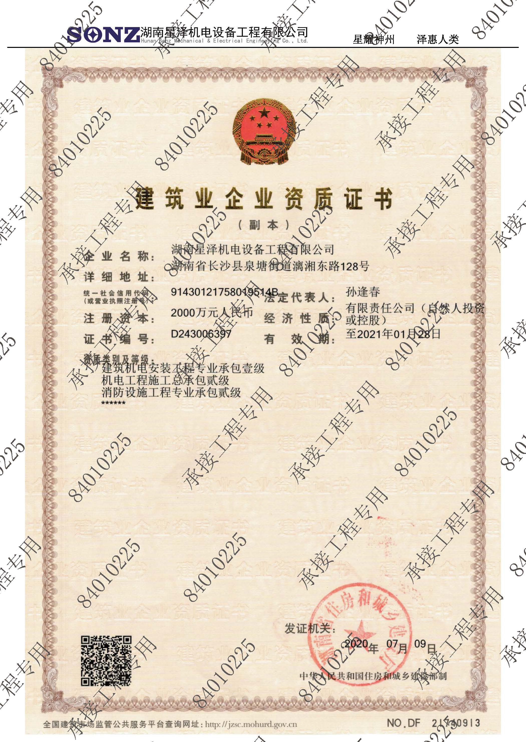 熱烈祝賀湖南星澤機(jī)電設(shè)備工程有限公司榮升機(jī)電專業(yè)承包一級資質(zhì)