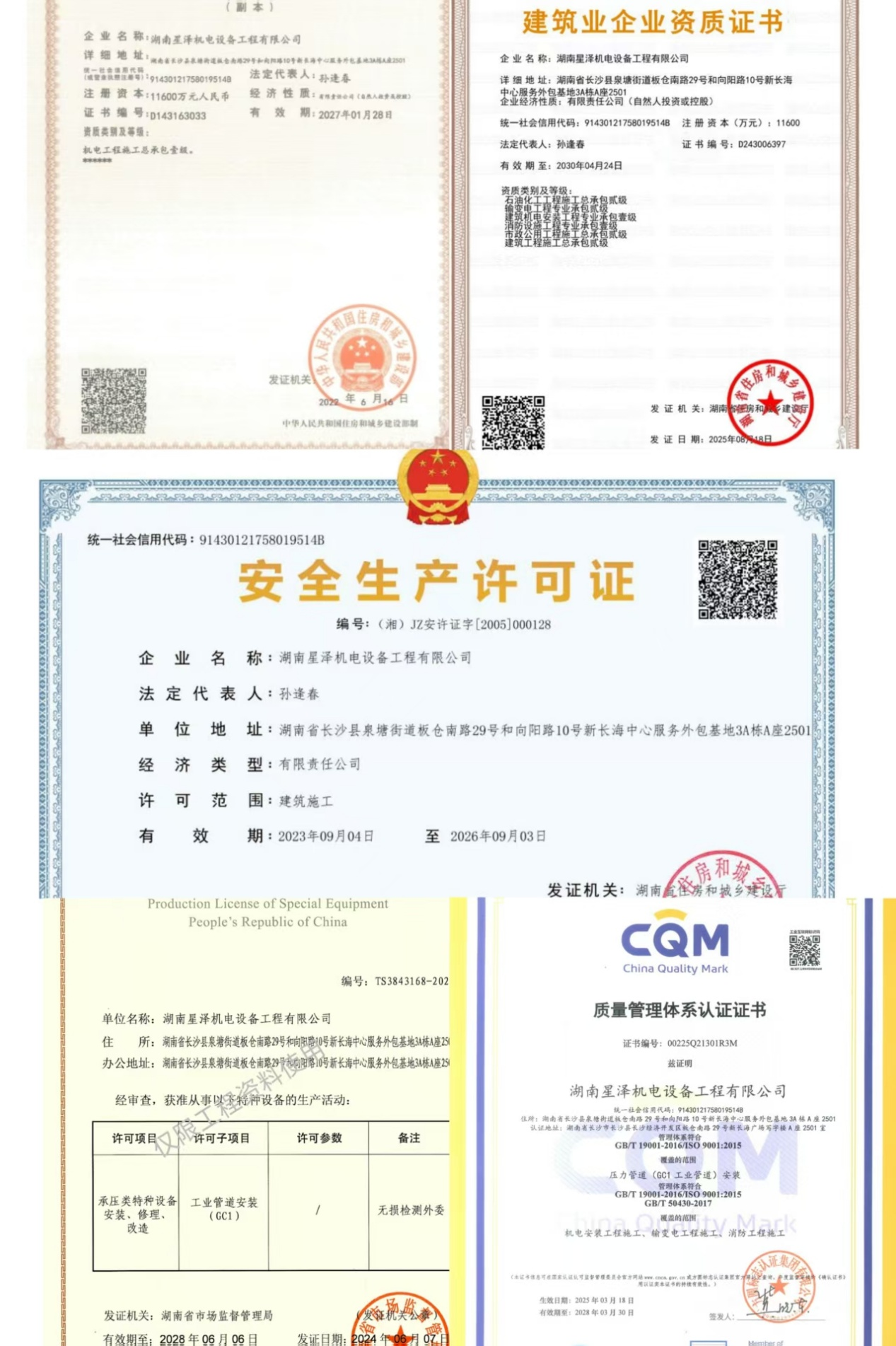 此次資質(zhì)延續(xù),星澤機(jī)電的 “資質(zhì)版圖” 再添底氣:不僅牢牢守住機(jī)電工程施工總承包一級(jí)、機(jī)電安裝工程專業(yè)承包一級(jí)、消防設(shè)施工程專業(yè)承包一級(jí)三大核心領(lǐng)域的 “一級(jí)資質(zhì)” 高地,更持有壓力管道安裝 GC1 級(jí)這一高風(fēng)險(xiǎn)領(lǐng)域的關(guān)鍵資質(zhì),同時(shí)涵蓋市政公用工程施工總承包二級(jí)、石油化工工程施工總承包二級(jí)、輸變電工程專業(yè)承包二級(jí)、房屋建筑工程施工總承包二級(jí),以及由國(guó)家能源局核發(fā)的承裝(修、試)電力設(shè)施許可證三級(jí)。這一 “全鏈條、高等級(jí)” 的資質(zhì)組合,意味著星澤機(jī)電具備了在大型機(jī)電安裝、復(fù)雜消防工程、高壓管道建設(shè)、市政基礎(chǔ)設(shè)施、石化項(xiàng)目、電力工程等多場(chǎng)景下的全流程服務(wù)能力,能夠滿足不同客戶在多元化工程需求中的高標(biāo)準(zhǔn)、高要求,成為行業(yè)內(nèi)少有的 “多領(lǐng)域全能型” 工程服務(wù)商。