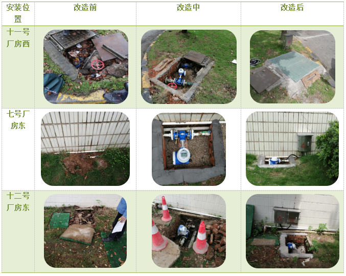 1例如23號(hào)廠房西南角的表井,打開井蓋全部是泥土,表都看不到,井的尺寸也不大,僅能容下一個(gè)人,機(jī)具無法在里面施工。施工人員硬是憑著雙手向下挖出1米多深,清出井里的磚塊和淤泥。成功更換了智能水表。